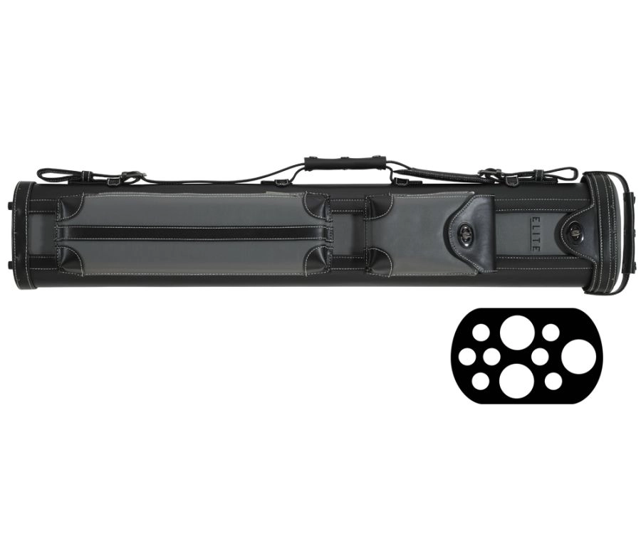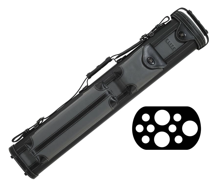 Elite 3 butts &7 shafts grey cue case with two carrying handles and adjustable strap.